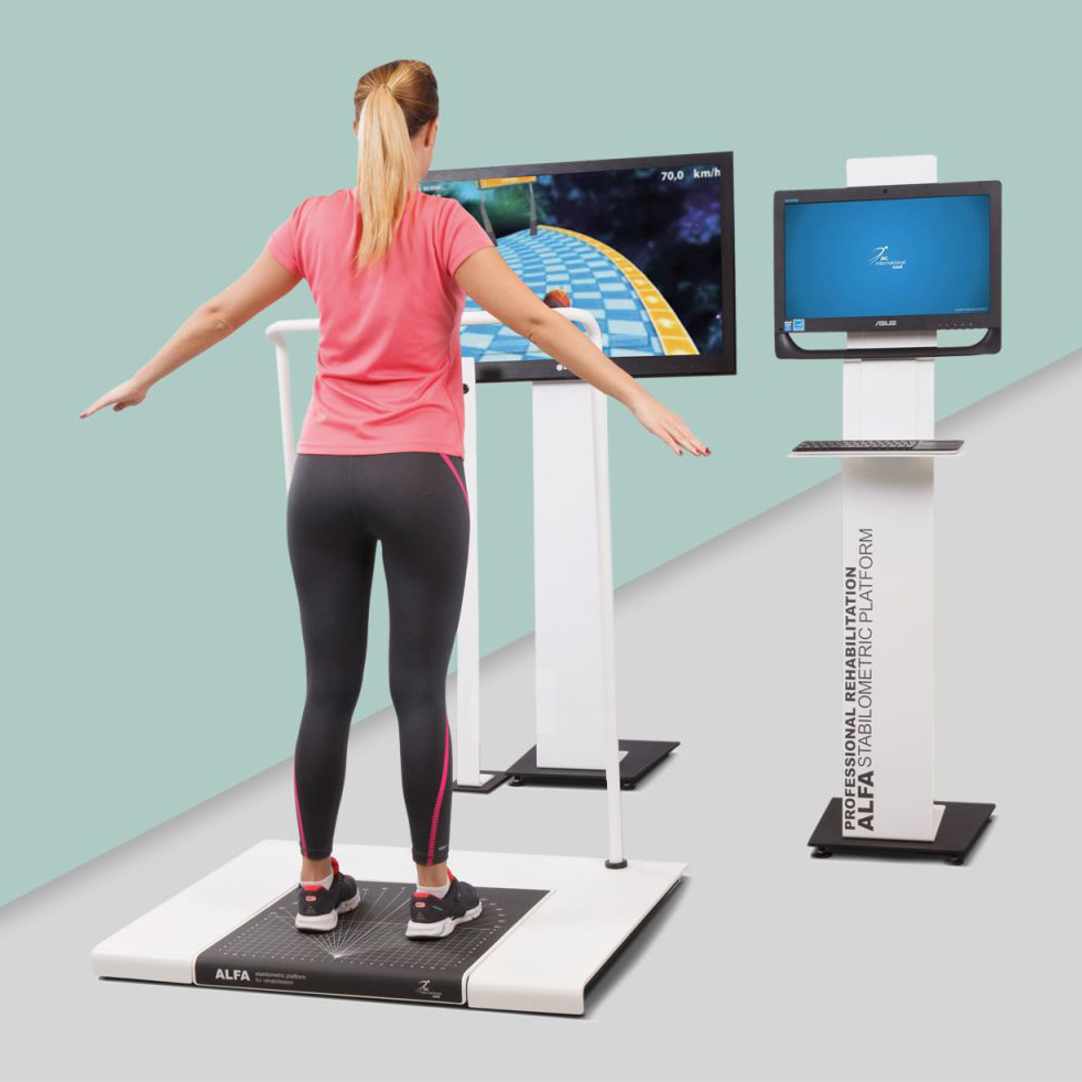 Стабилоплатформа ALFA – аппаратно-программный комплекс, предназначенный для оценки и тренировки чувства равновесия, походки, а также нагрузки на опорную поверхность в статичном состоянии.