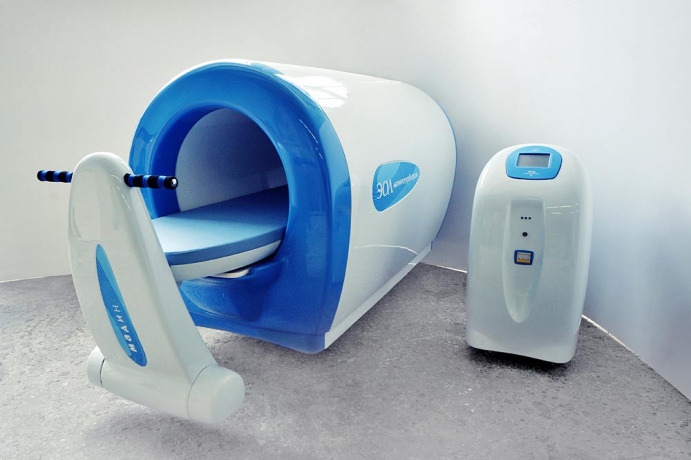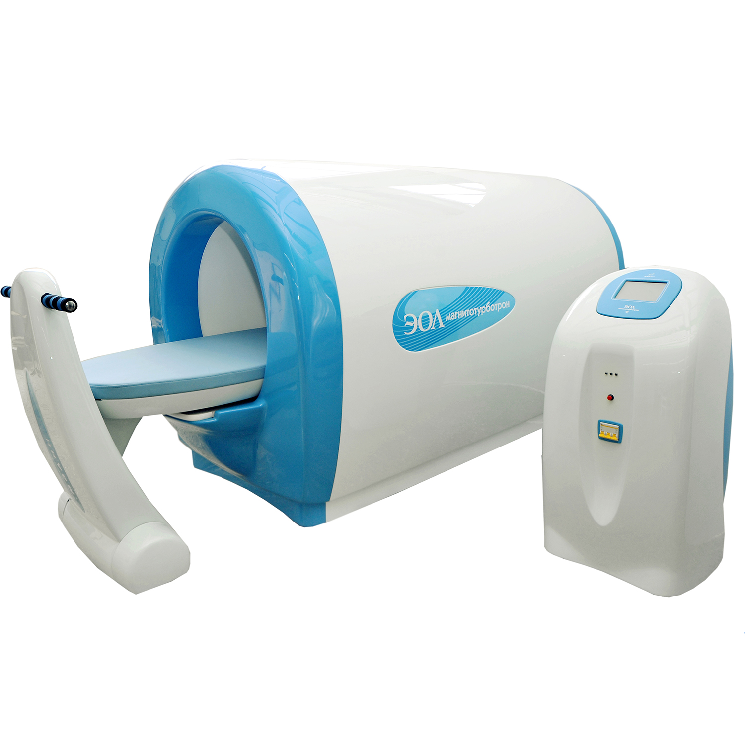 Магнитотурботрон - физиотерапевтическая установка для общесистемной магнитотерапии, в основе работы которой лежит принцип общей магнитотерапии, одновременного воздействия магнитным полем на весь организм пациента. Подобный эффект достигается за счет формы установки в виде медицинской капсулы с индуктором крупного размера внутри. В ходе работы магнитотурботрон создает однородное вращающееся магнитное поле мощностью до 3 мТл вокруг пациента, единовременно влияя на все системы организма.