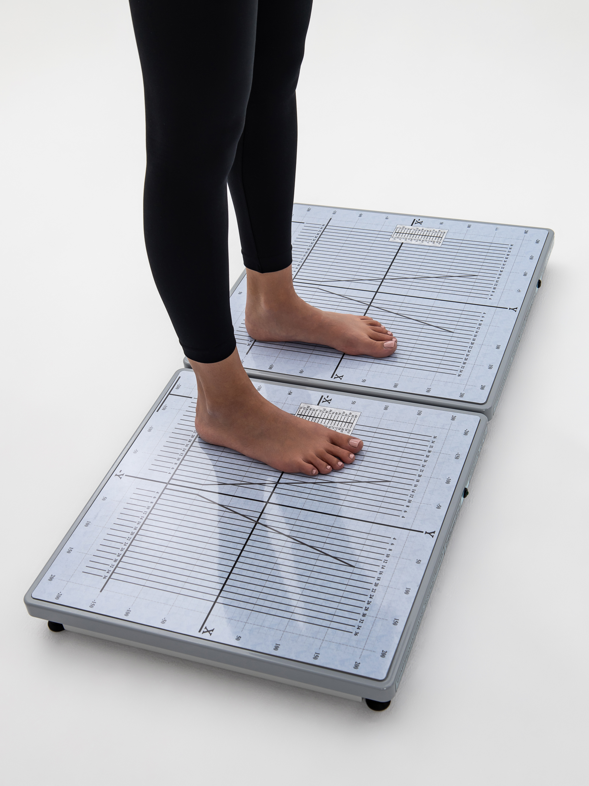 - Располагает возможностями игнорировать неровности пола путём регулировки высоты одной из опорных ножек (аппаратная нивелировка асимметрий давления на ножки), с последующим более чувствительным и точным программным «обнулением» остаточных давлений на тензодатчики опорных ножек.