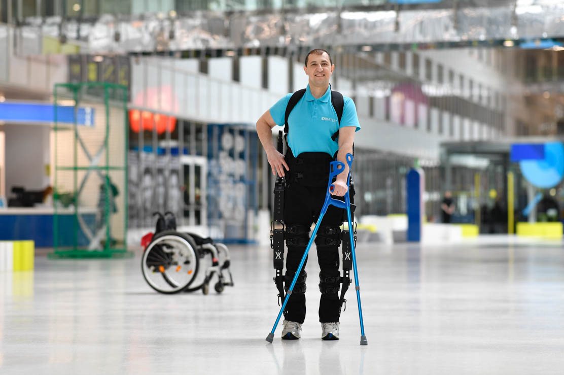 ExoAtlet (ЭкзоАтлет) — экзоскелет для медицинской и социальной реабилитации. Способствует ускорению процесса реабилитации и улучшению качества жизни пациентов, переживших инсульт и травмы спинного мозга, страдающих от церебрального паралича, рассеянного склероза и других нозологий.