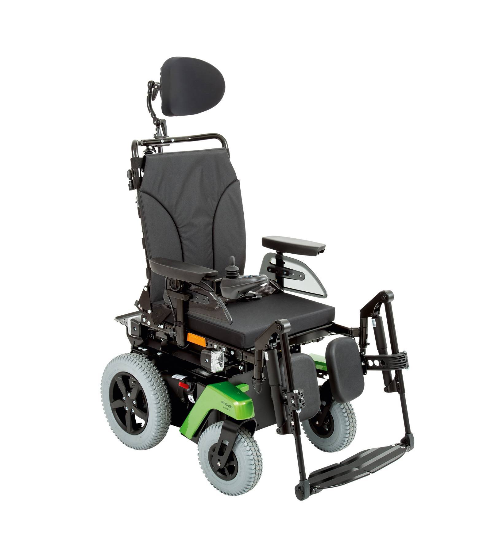 Электроколяска также может быть оборудована центральным или передним приводом, механизмами для дополнительной регулировки угла наклона спинки и высоты сидения.