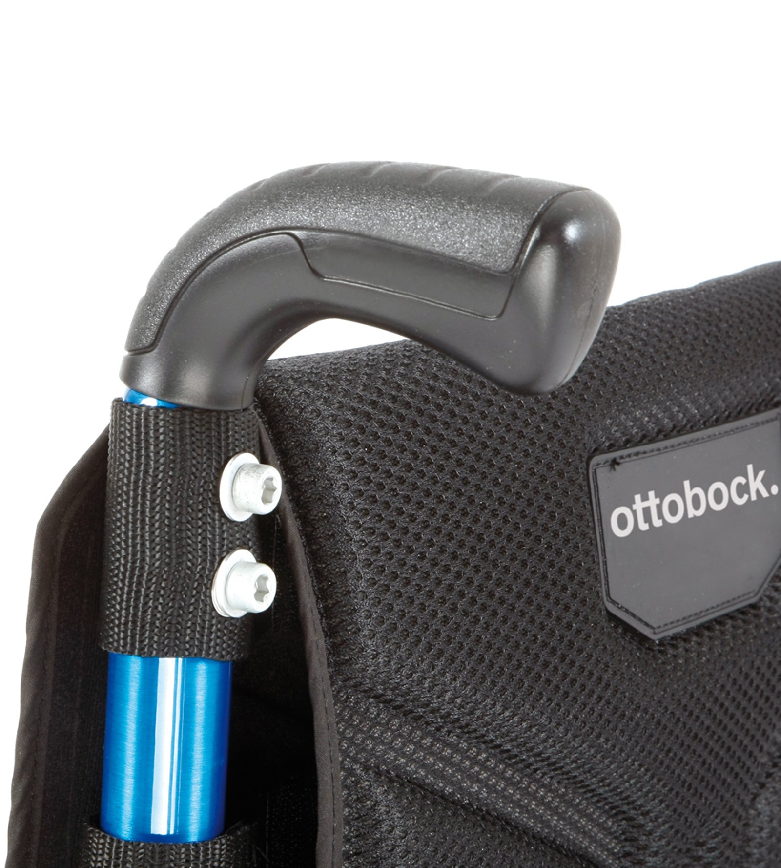 - Тормоз приводных колес на уровне колена пользователя, с опускающейся вниз ручкой тормоза.