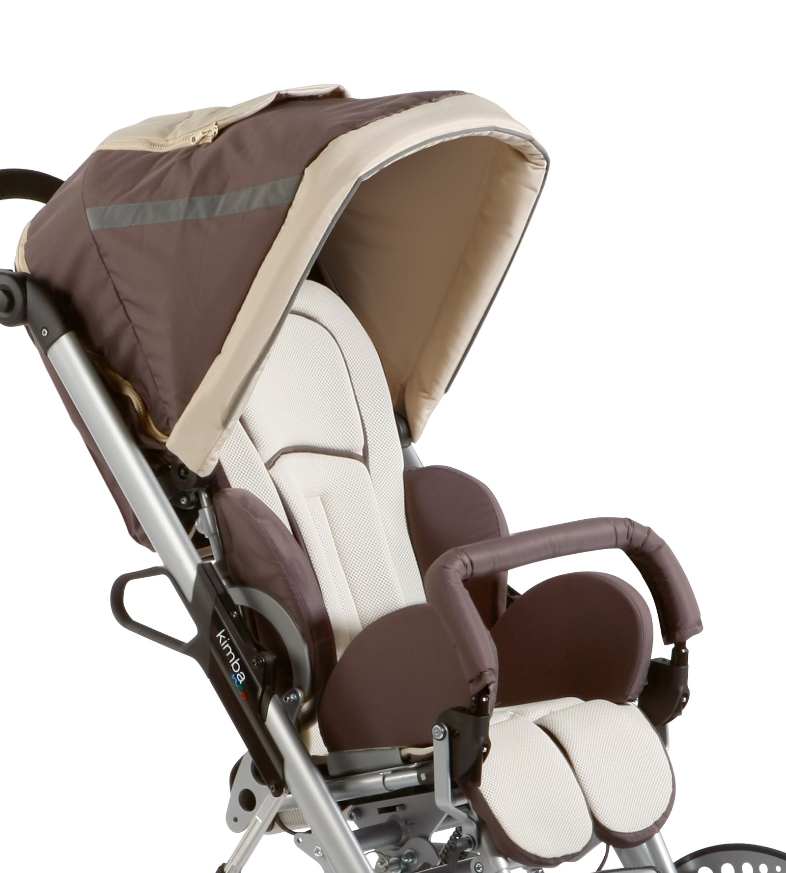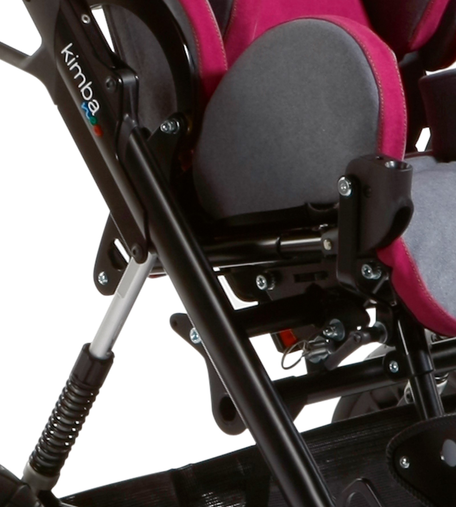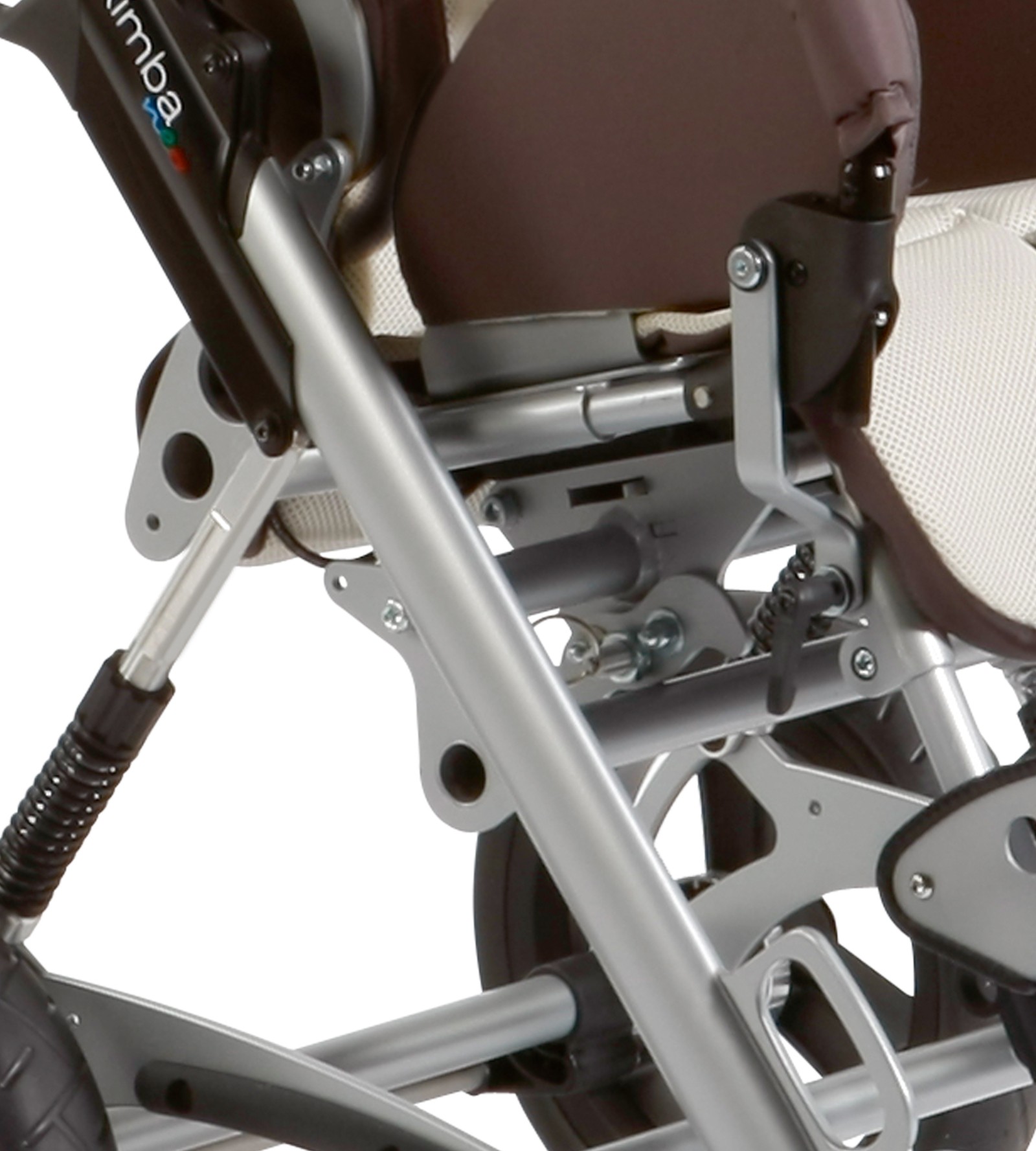 Сиденье инвалидного кресла Кимба Нео настраивается индивидуально под нужды ребенка. Угол наклона кресла меняется от 80 до 180 градусов, что позволяет приводить коляску в любое положение: вертикальное для активности и горизонтальное для отдыха. В зависимости от угла наклона спинки можно изменить угол наклона подножки для комфортного положения коленных и тазобедренных суставов.