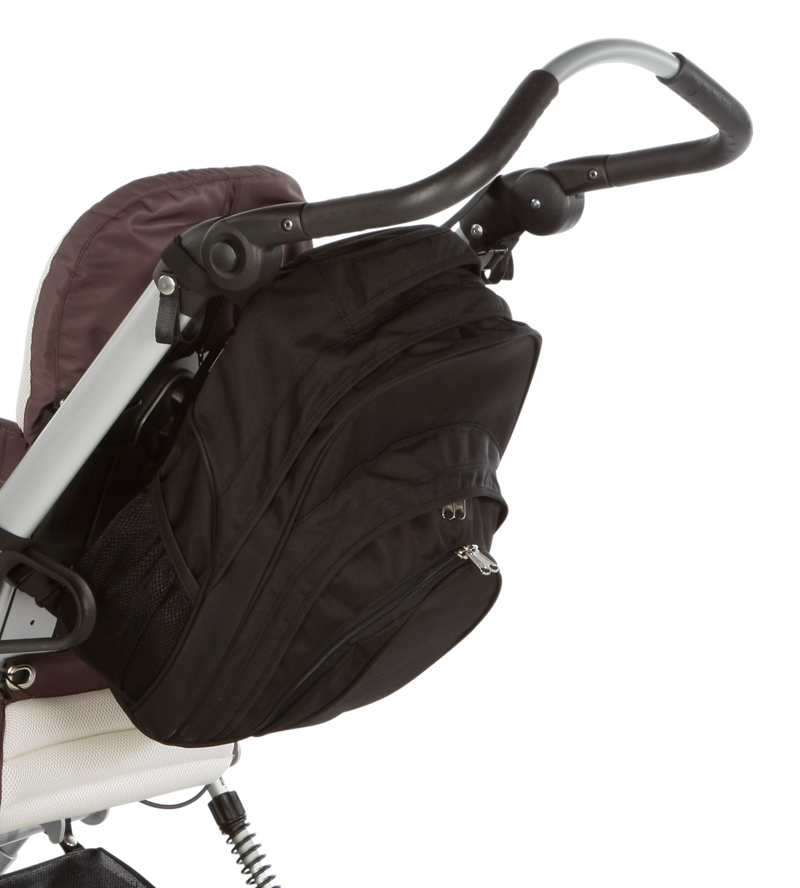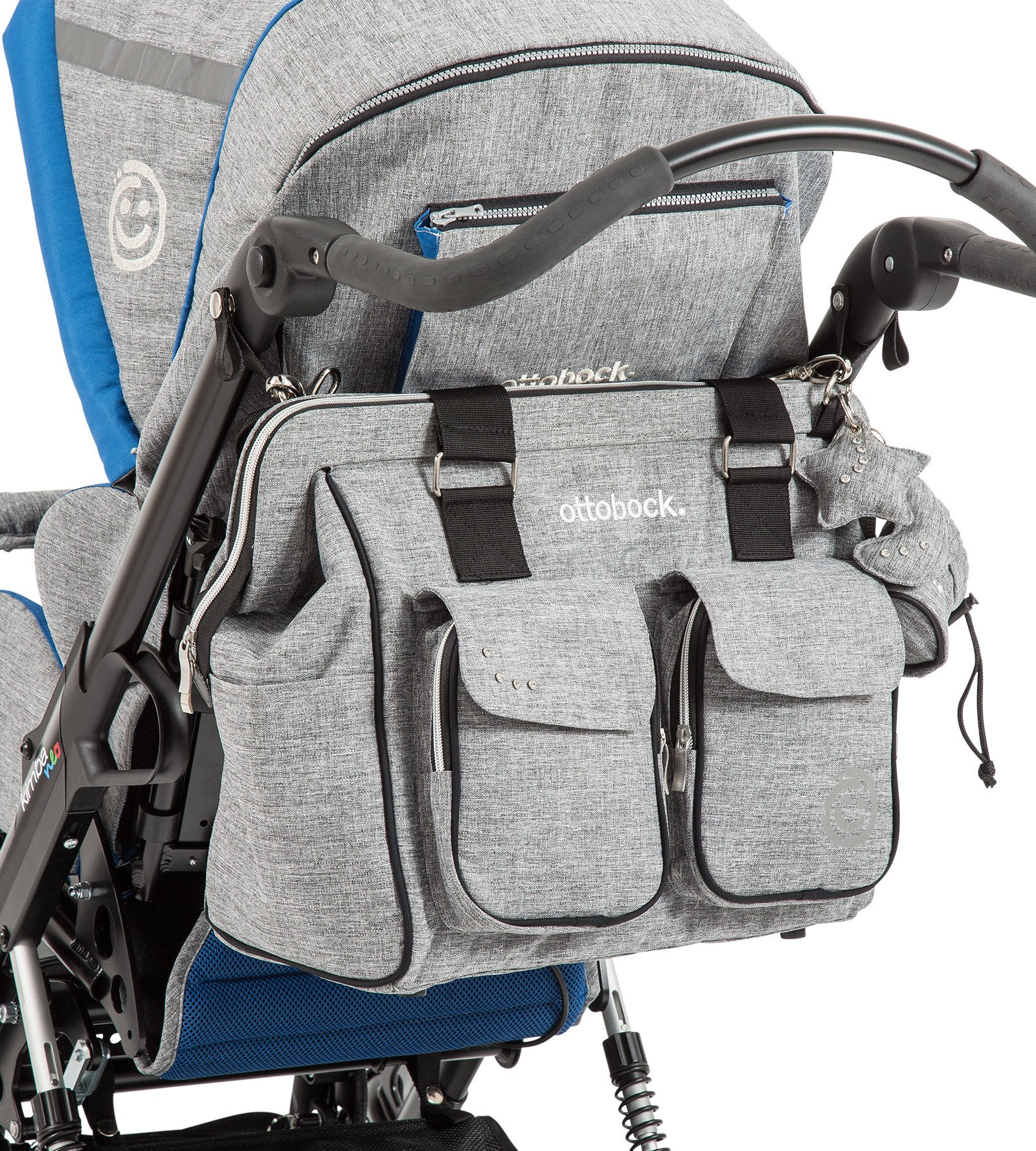 - Прогулочное шасси Кимба Нео может быть оборудовано удобной сумкой для подгузников и мелочей или рюкзаком, а также специальной подставкой для медицинской аппаратуры (например, аппарат ИВЛ).