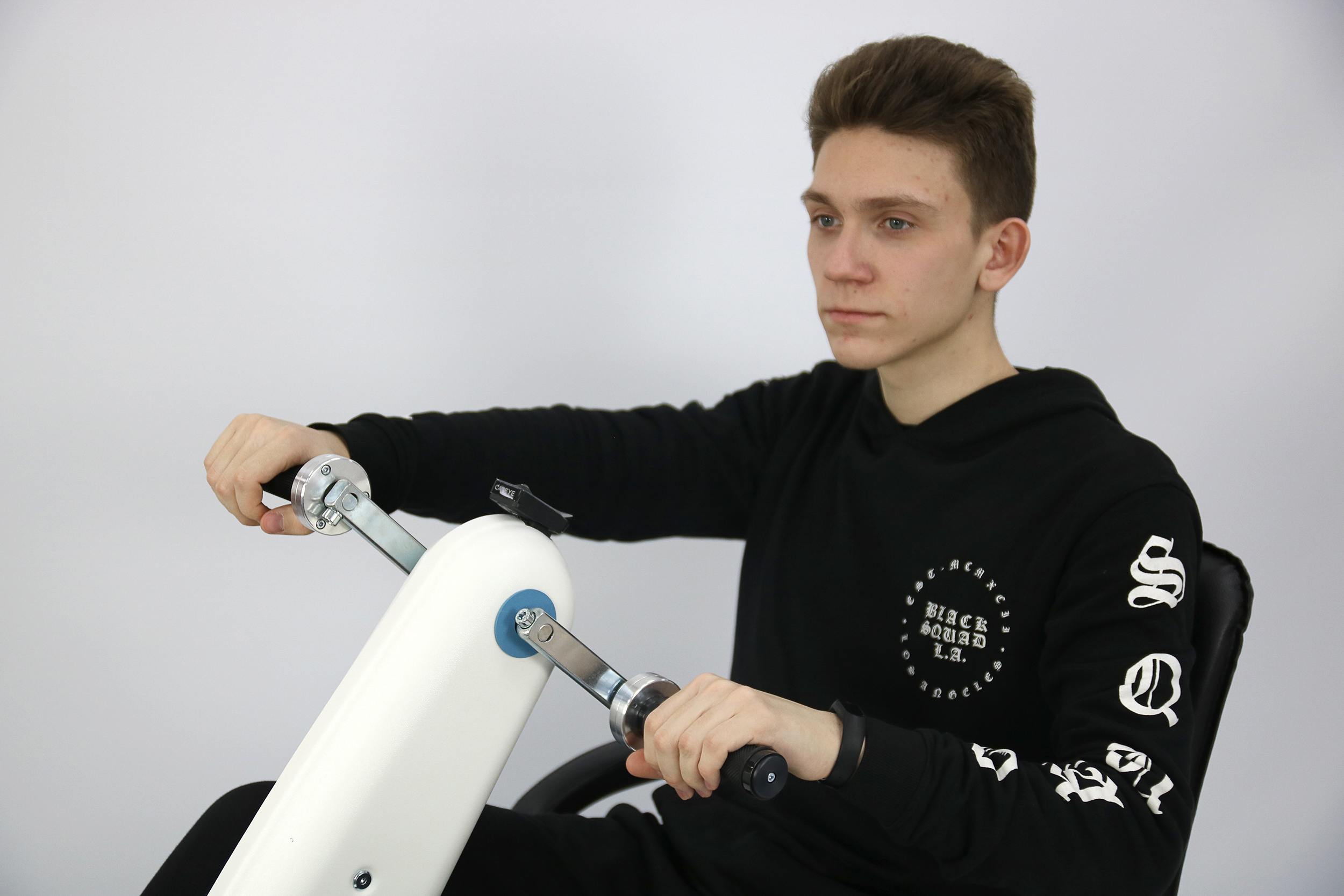 Главная особенность аппарата заключается в том, что тренировки на нем способствуют двигательной активизации верхних конечностей пациента за счет движения нижних конечностей и наоборот.