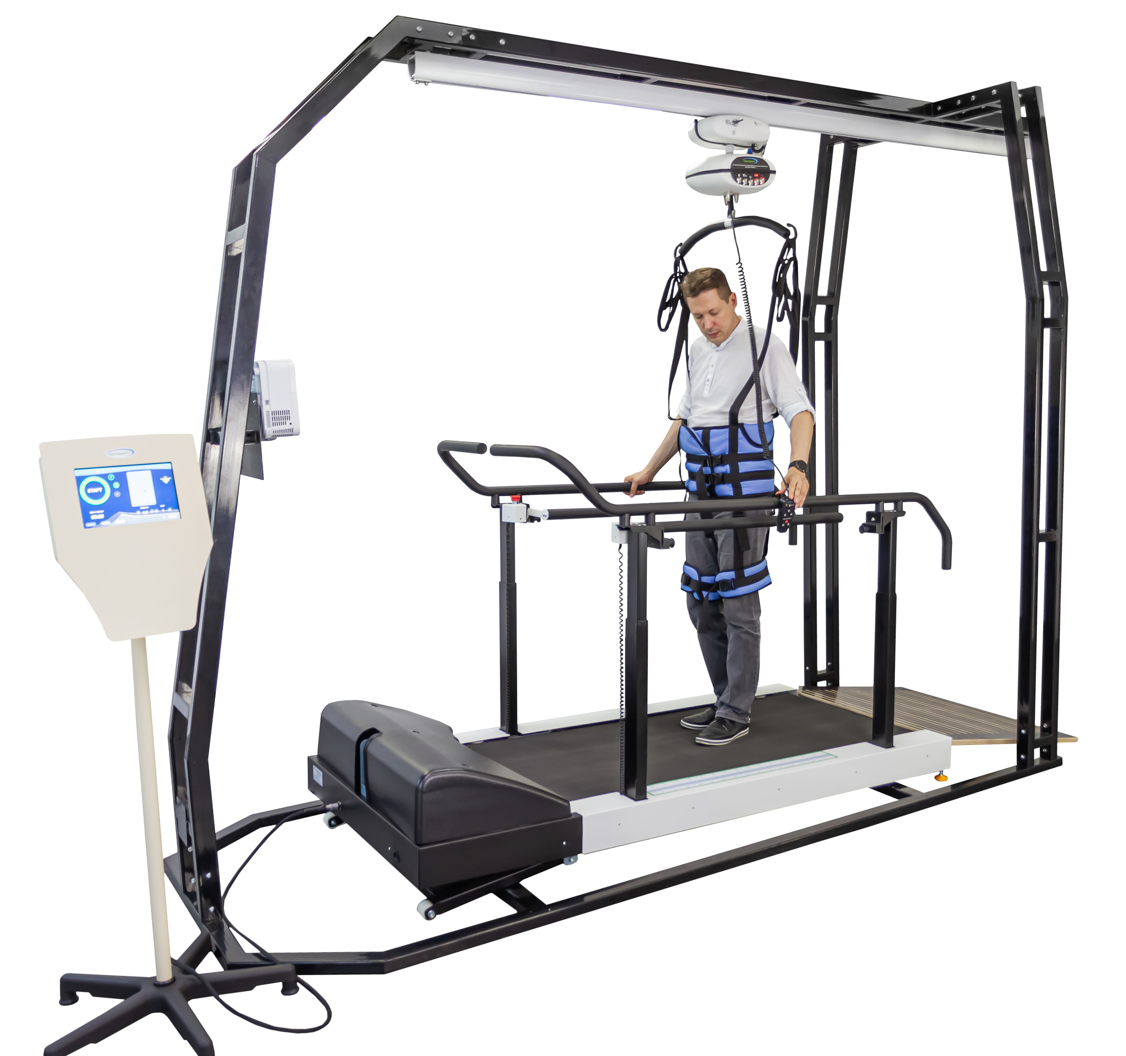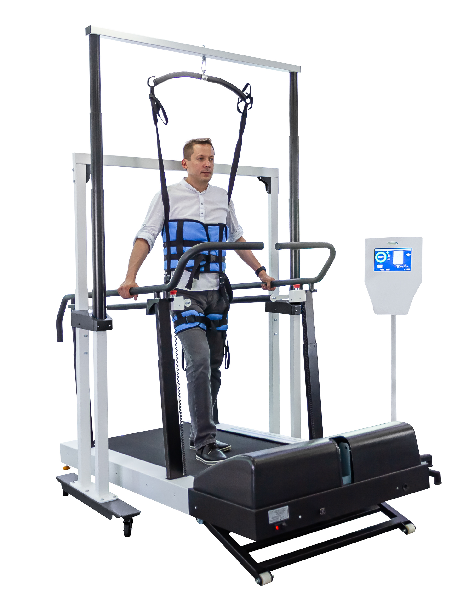 Реабилитационная беговая дорожка Орторент «Стандарт» представляет собой комплексную систему реабилитации, способствующую активизации двигательных функций и восстановлению навыков ходьбы. Синхронизация бегового полотна с шагом пациента предоставляет специалисту возможность параметрировать программу занятий пациента.