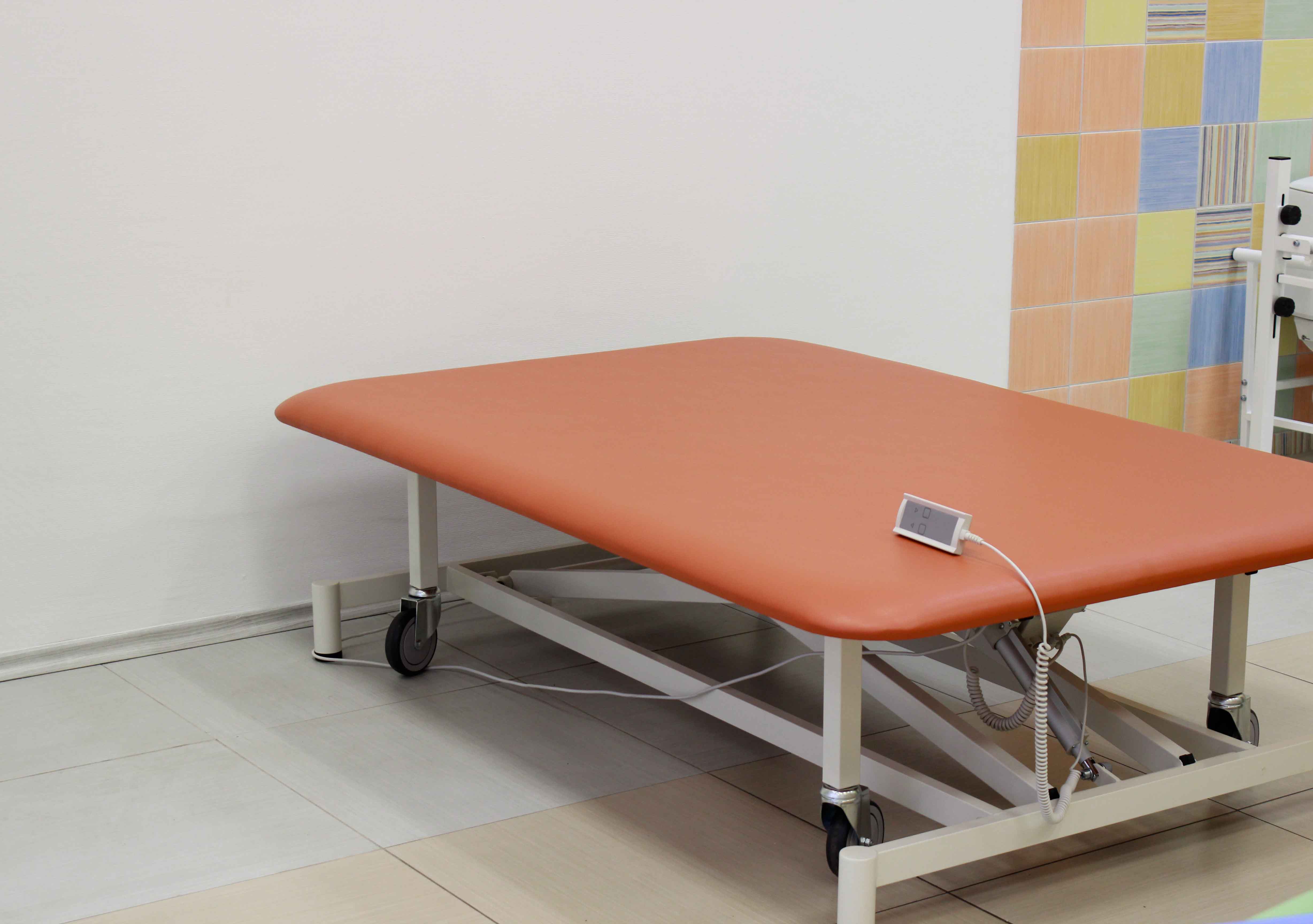 Стол для кинезотерапии (Бобат) используется в горизонтальном положении для проведения различных видов процедур (придания телу различных положений, массажа, активно-пассивной гимнастики) при лечении неврологических и ортопедических больных, в том числе и по методике Войта-Бобата.