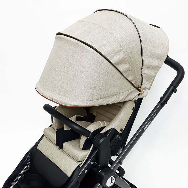 В базовой комплектации коляска поставляется со съемным капюшоном и корзиной для вещей. Она также может быть дополнена дождевиком и мешком для ног.
